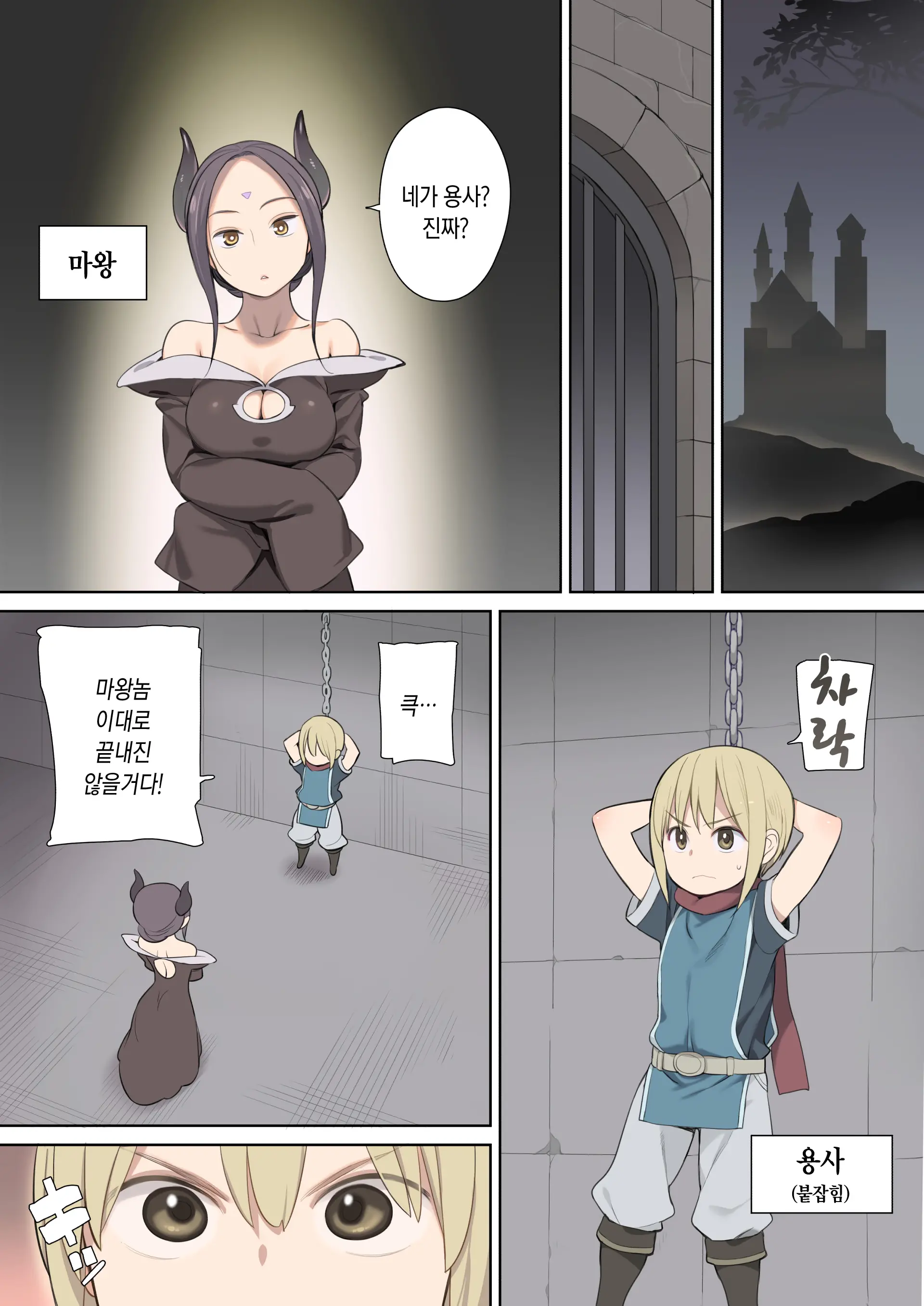 붙잡힌 용사와 마왕(여자)과 엘프