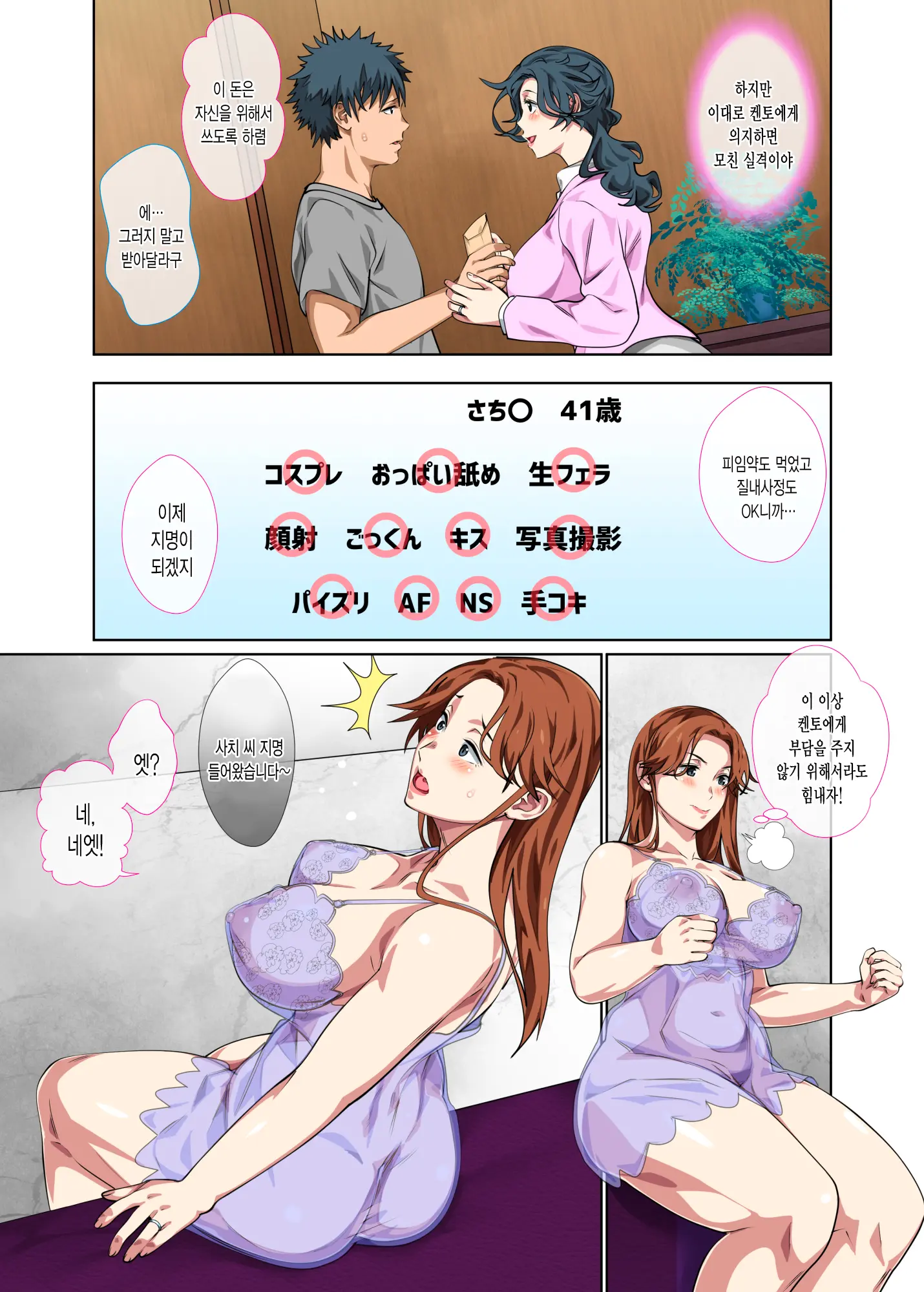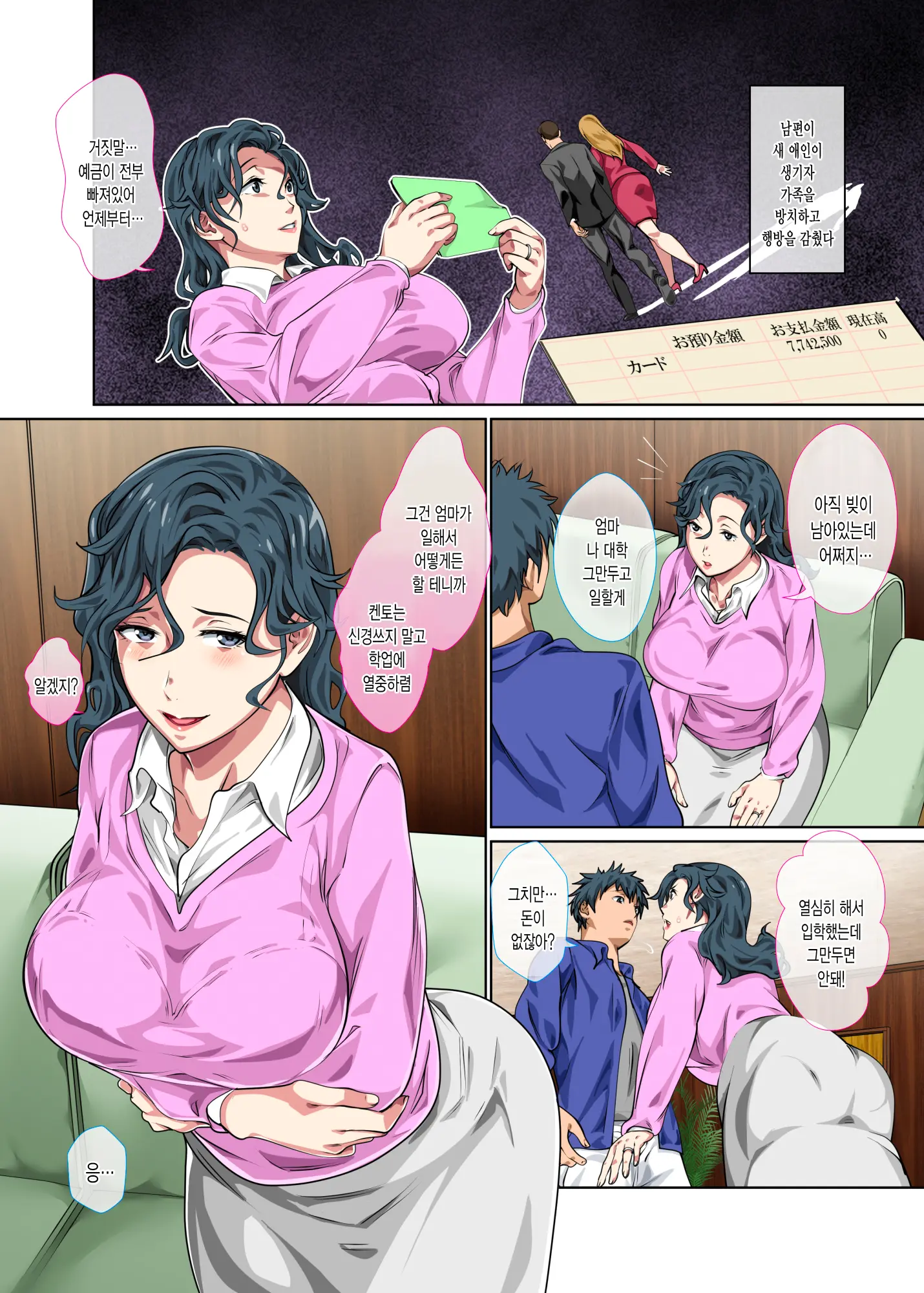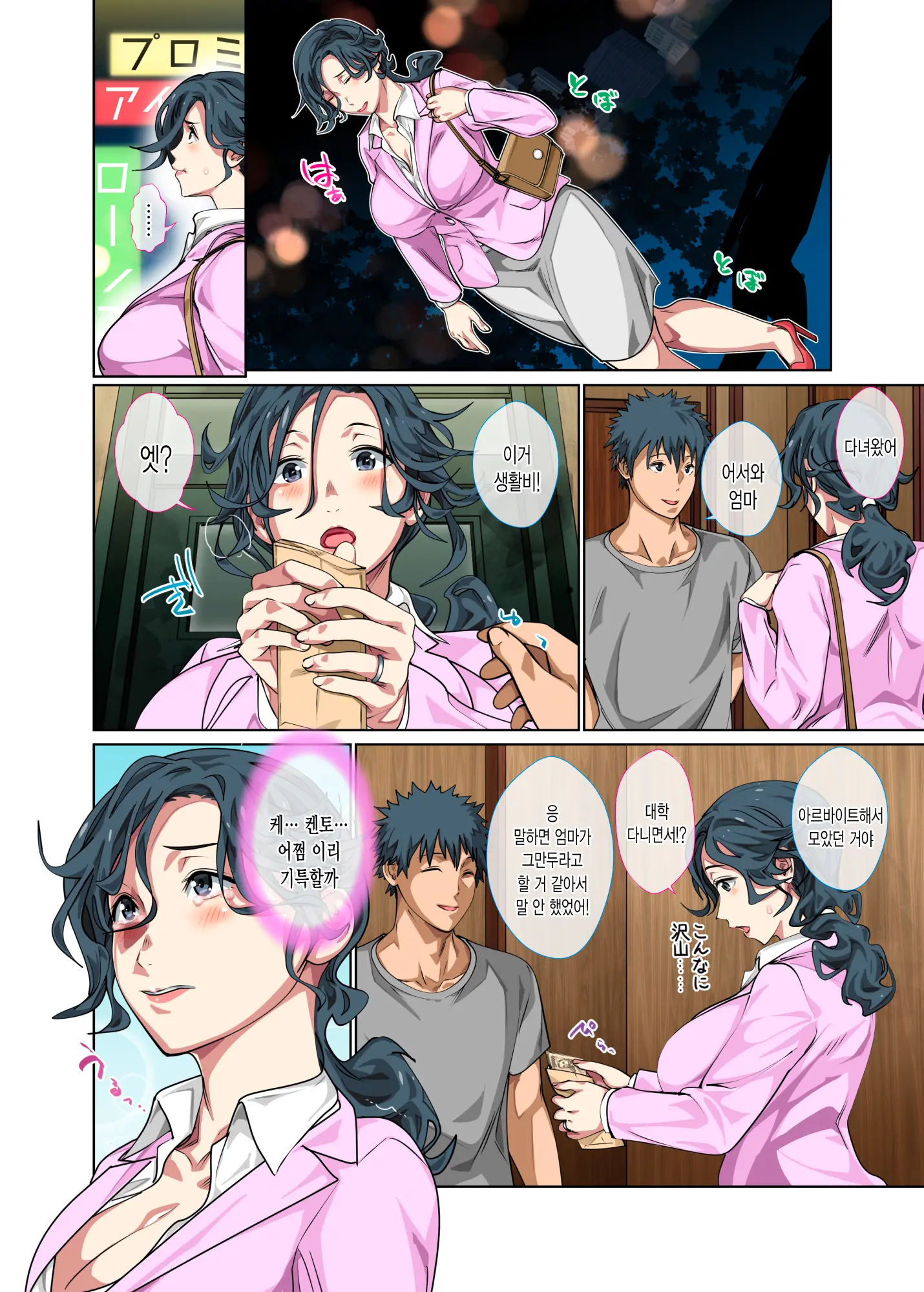 수수하지만 야한 몸을 가진 엄마를 풍속점에 빠지기 직전에 구해 모자상간