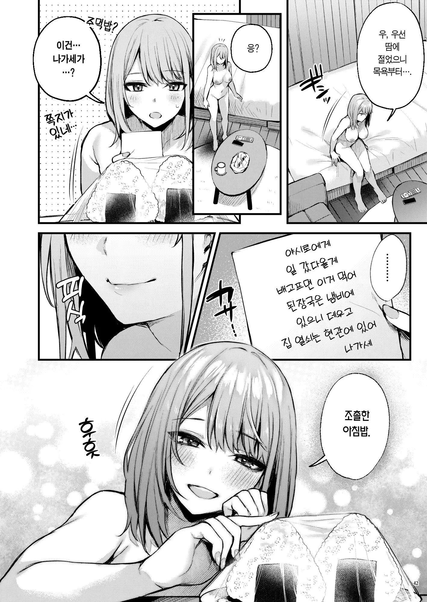 만족에 젖어 잠을 깬 아침에, 조촐한 식사를