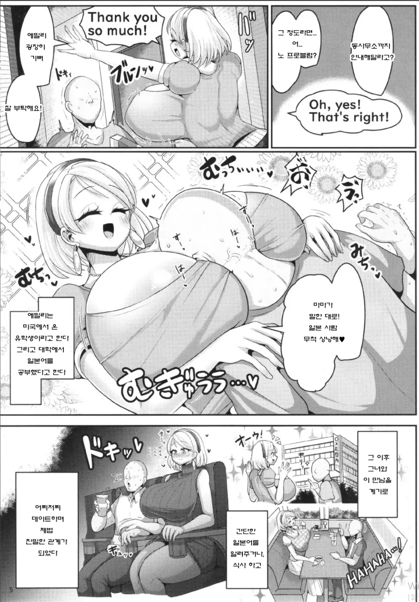 H 를 좋아하는 금발 백인 폭유 유학생 이 옆집에 이사 왔다!!