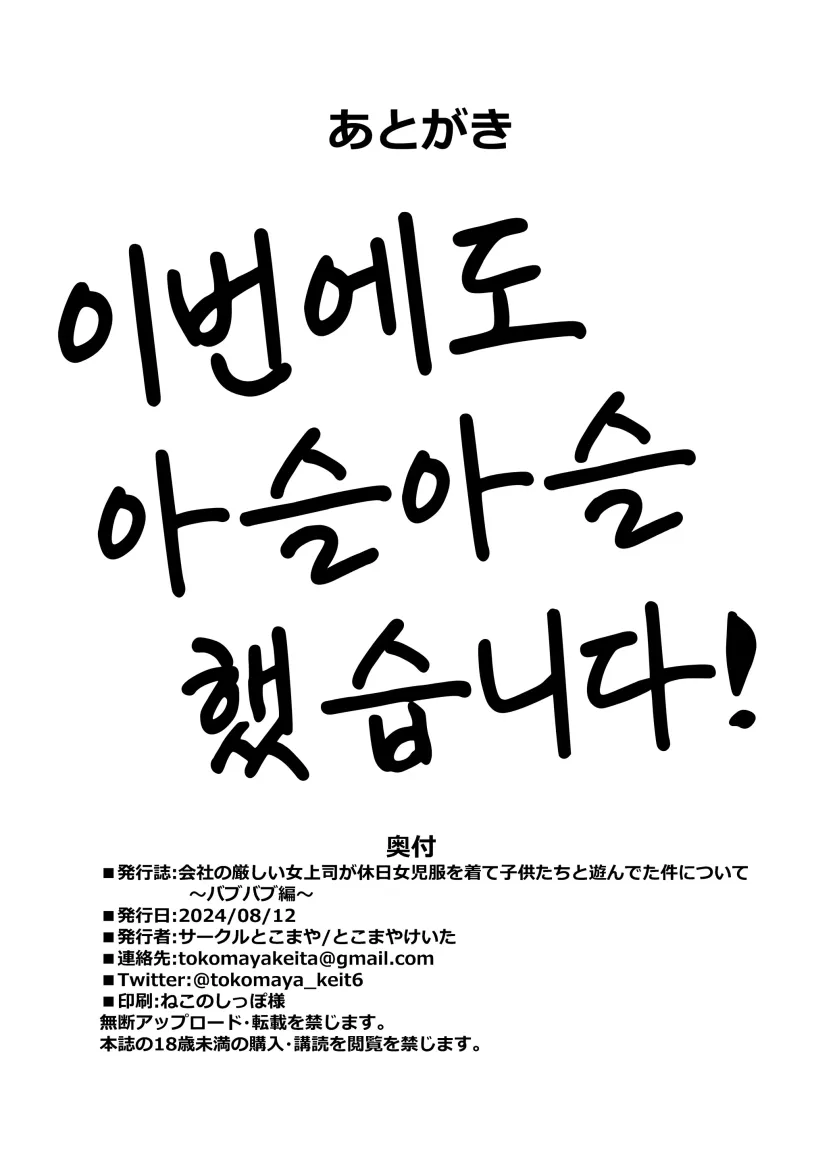 회사의 엄격한 여상사가 휴일에 아동복을 입고 아이들과 놀고 있었던 건에 대하여 ~응애편~